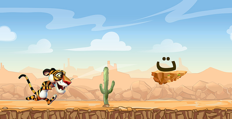 يجري الحيوان ويقفز أو يقلب ليتفادى العوائق و عند أخذ الحيوان للحرف يتم نطقه وهكذا حتى يتعلم شكل الحرف مع نطقه .