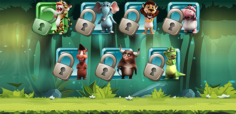 وكل مرحلة يلعبها حيوان نبدأ بالنمر ثم الفيل ثم الأسد ثم فرس النهر ثم الحصان ثم الثور ثم التمساح ولكل مرحلة بيئة مختلفة.